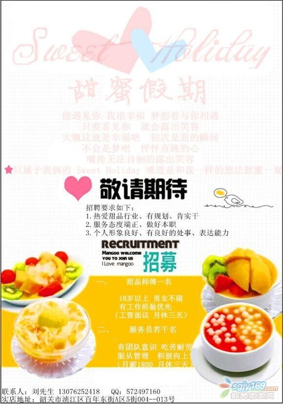 現(xiàn)招服務(wù)員,甜品師-Sweet Holiday