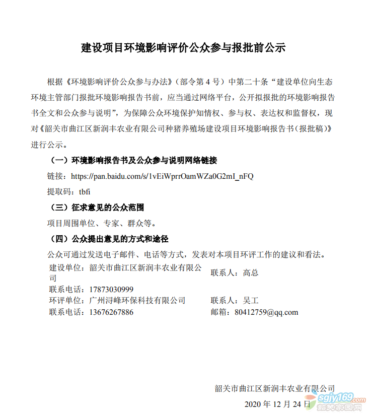 韶關(guān)市曲江區(qū)新潤(rùn)豐農(nóng)業(yè)有限公司種豬養(yǎng)殖場(chǎng)建設(shè)項(xiàng)目 環(huán)境影響評(píng)價(jià)公眾參與報(bào)批前go...